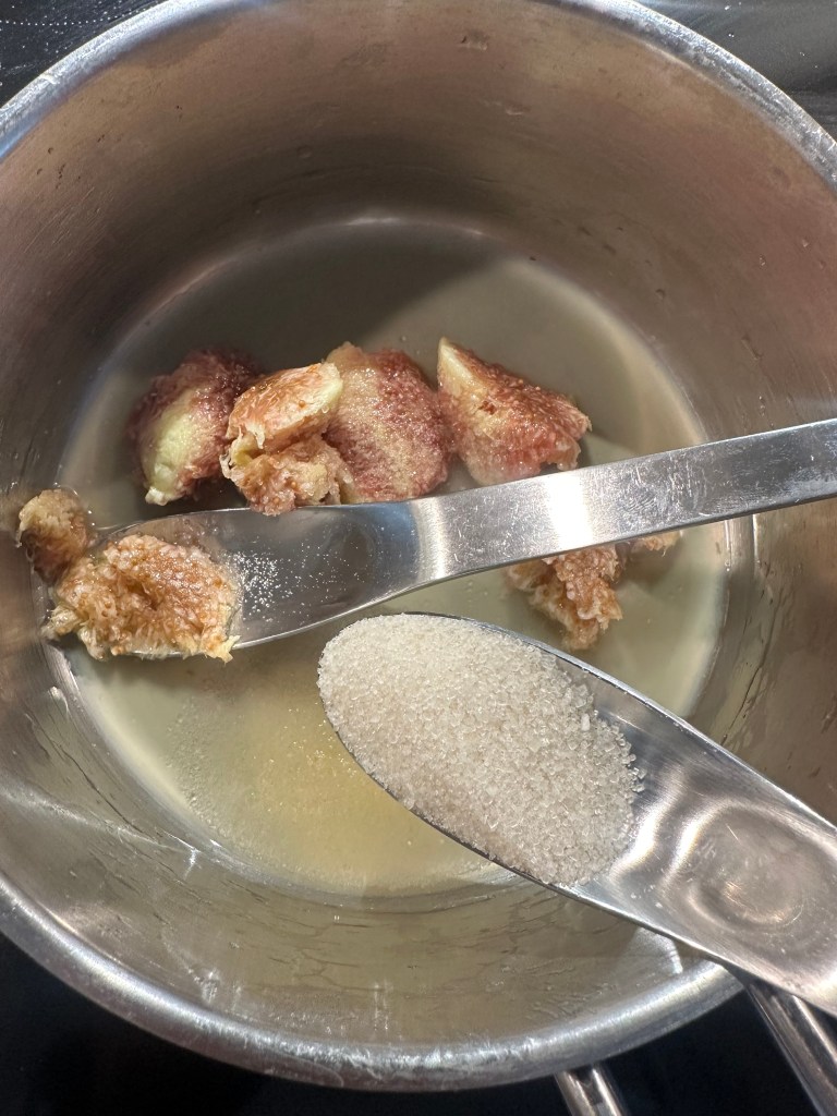 Tag indholdet ud af fignerne. Kom alle ingredienser i en kasserolle og kog op. Når det hele er mørt, kommer du indholdet i en blender og sir det bagefter tilbage i kasserollen. Grovhak nogle gode hasselnødder fra Piemonte og kom dem i siruppen. Og så er den klar.