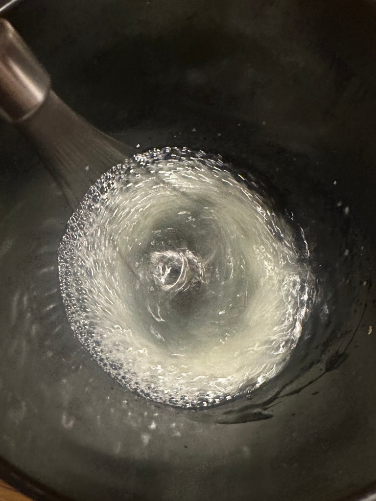 - Start med at lægge husblas i vand i 5 minutter. I mens pisker du æggeblommer og sukker sammen.
