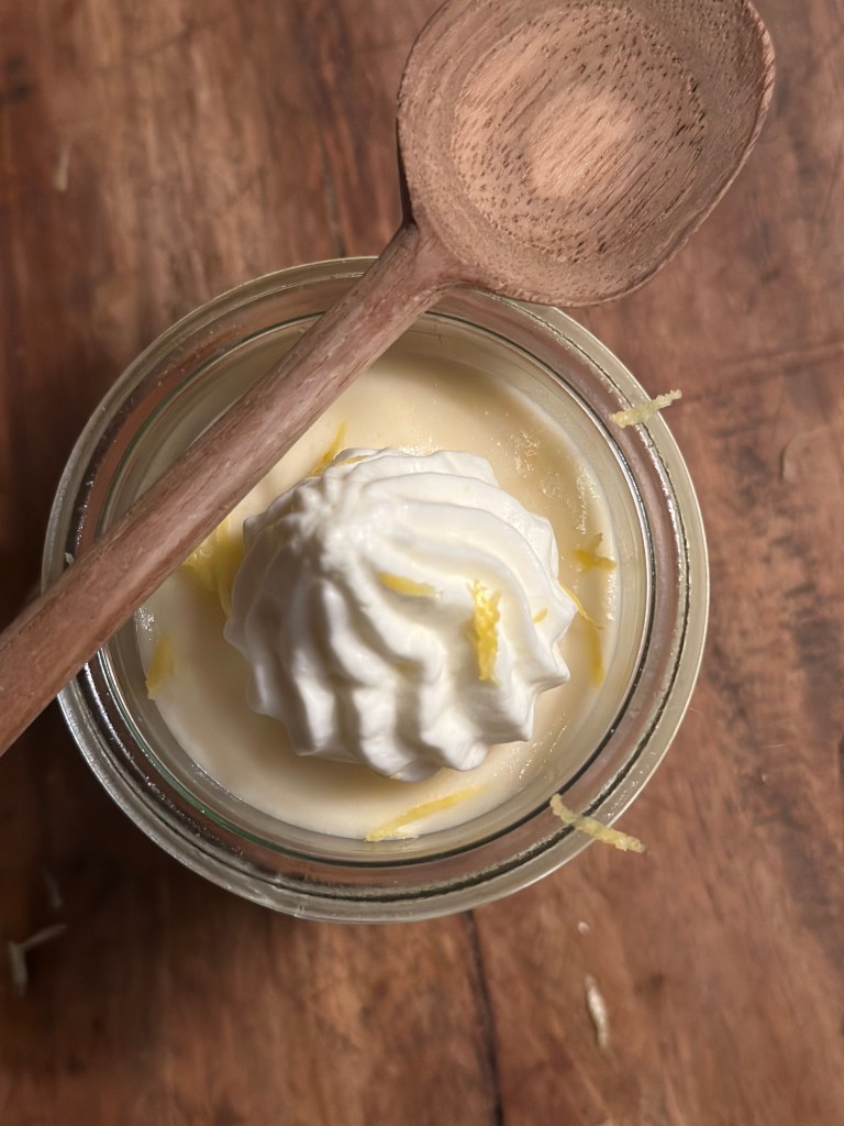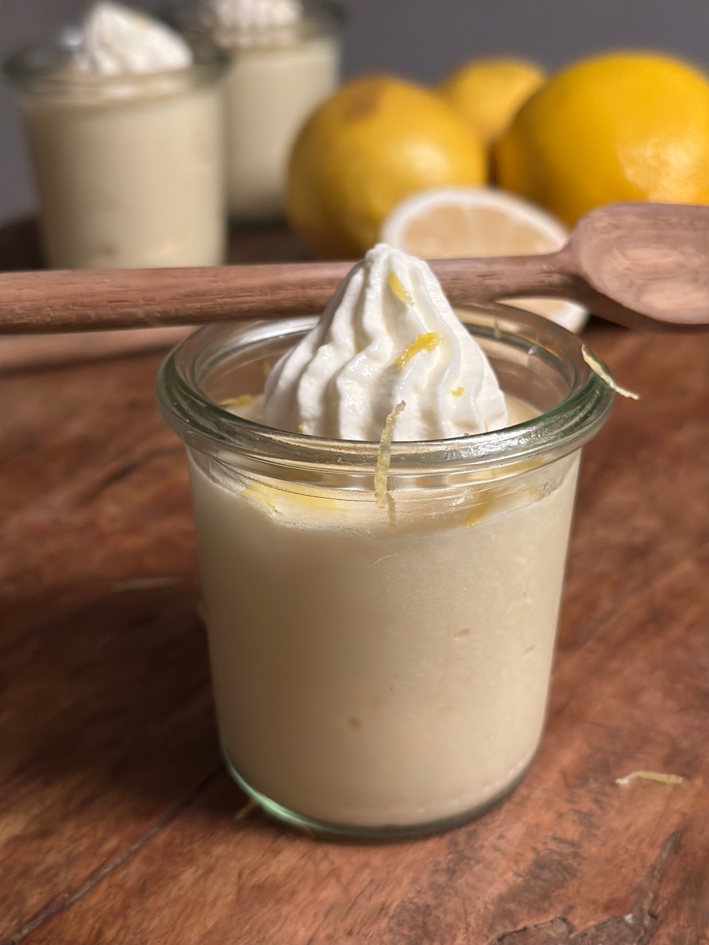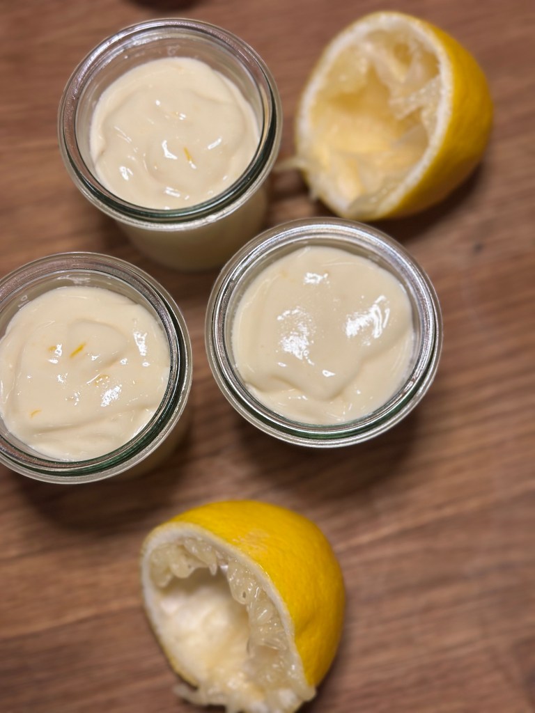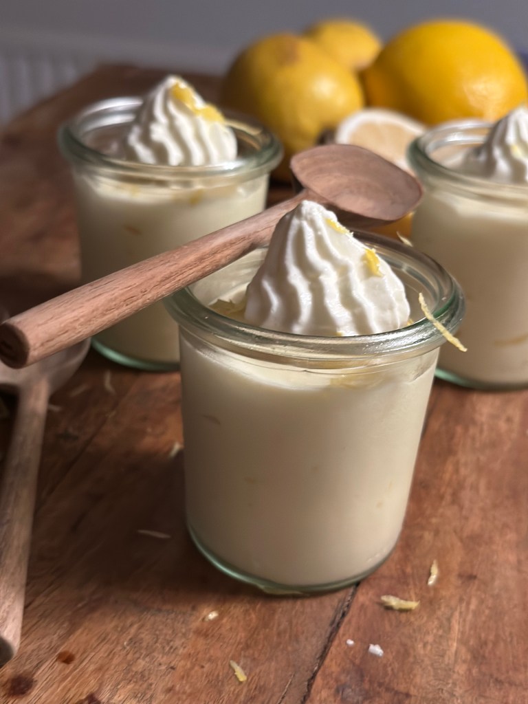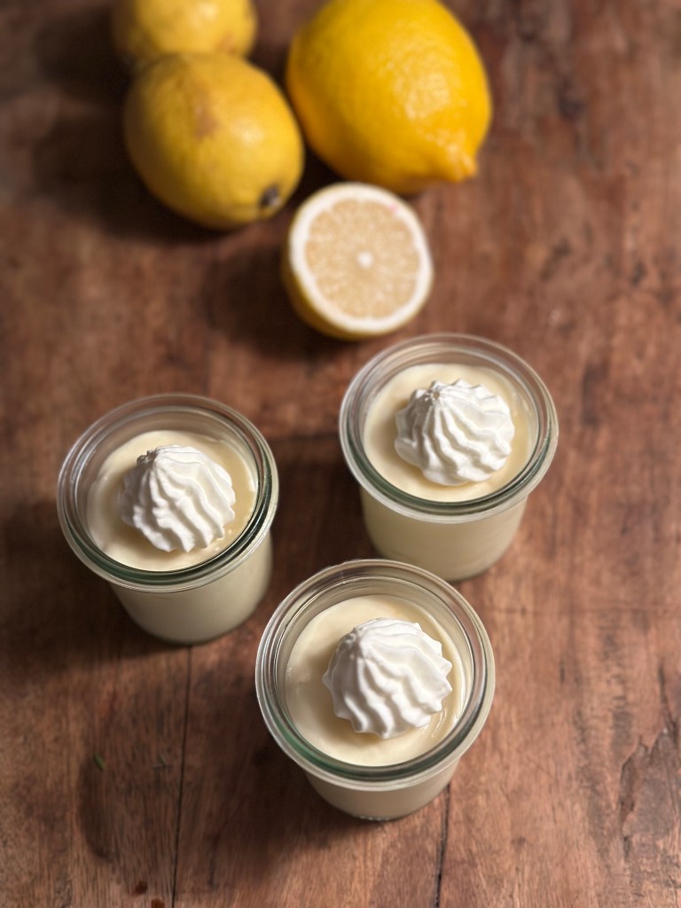 - Pynt med flødeskum og revet citronskal når de skal serveres.