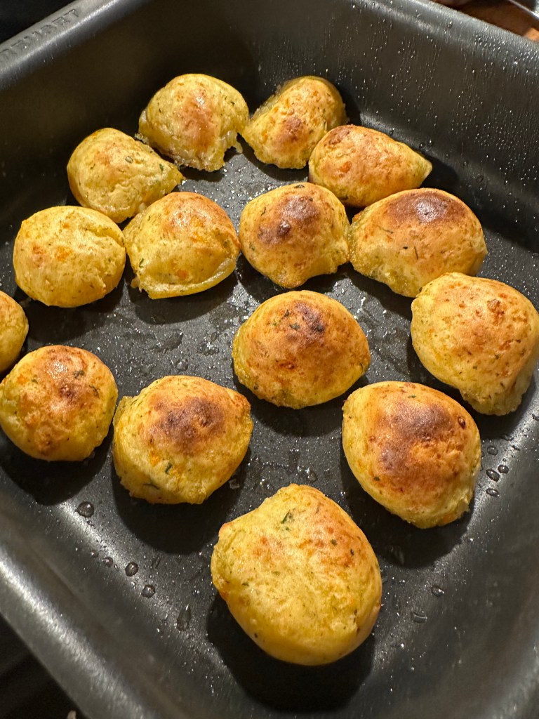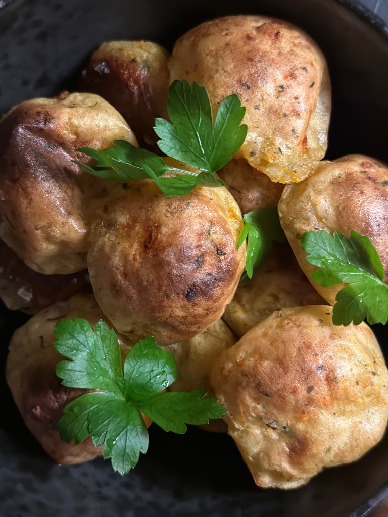 Så jeg har lavet min egen version, og den smager sindsygt godt. Indholdet er langt han af vejen den samme, men tilberedningen er anderledes. De ender derfor med at være bløde og saftige inden i, men sprøde uden på.