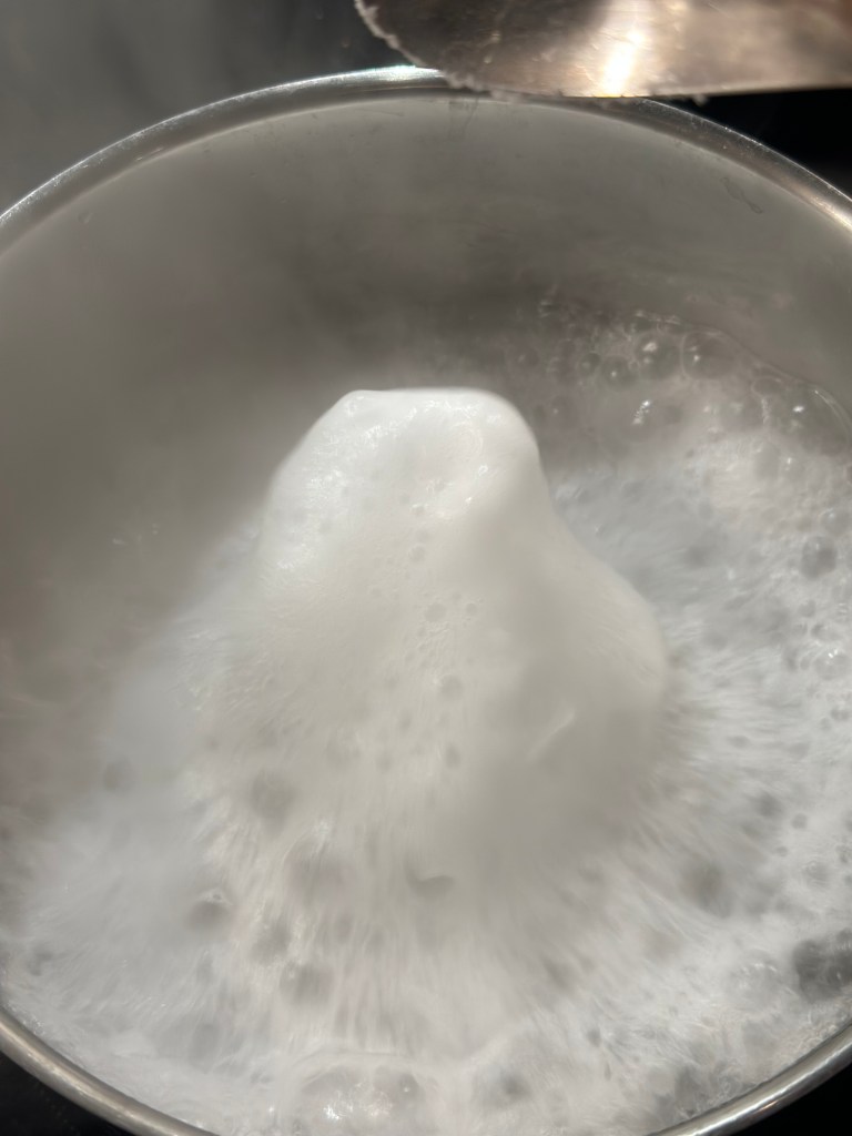 - Kog 1 liter vand op, tilsæt natron.