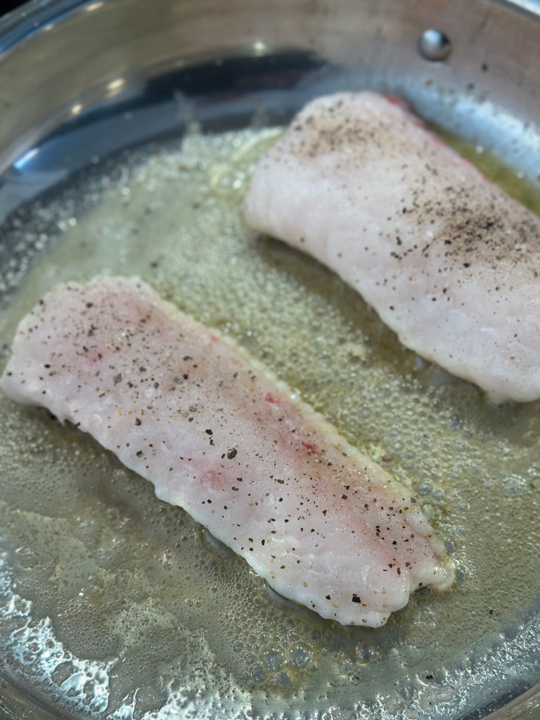 Jeg steger den blot i smør ved mellem varme. Krydrer kun ed salt og peber, men for at få lidt sauce, kommer jeg fløde og citronsaft på panden, efter jeg har taget fisken af.