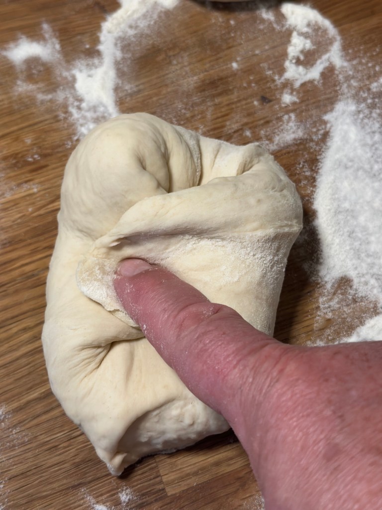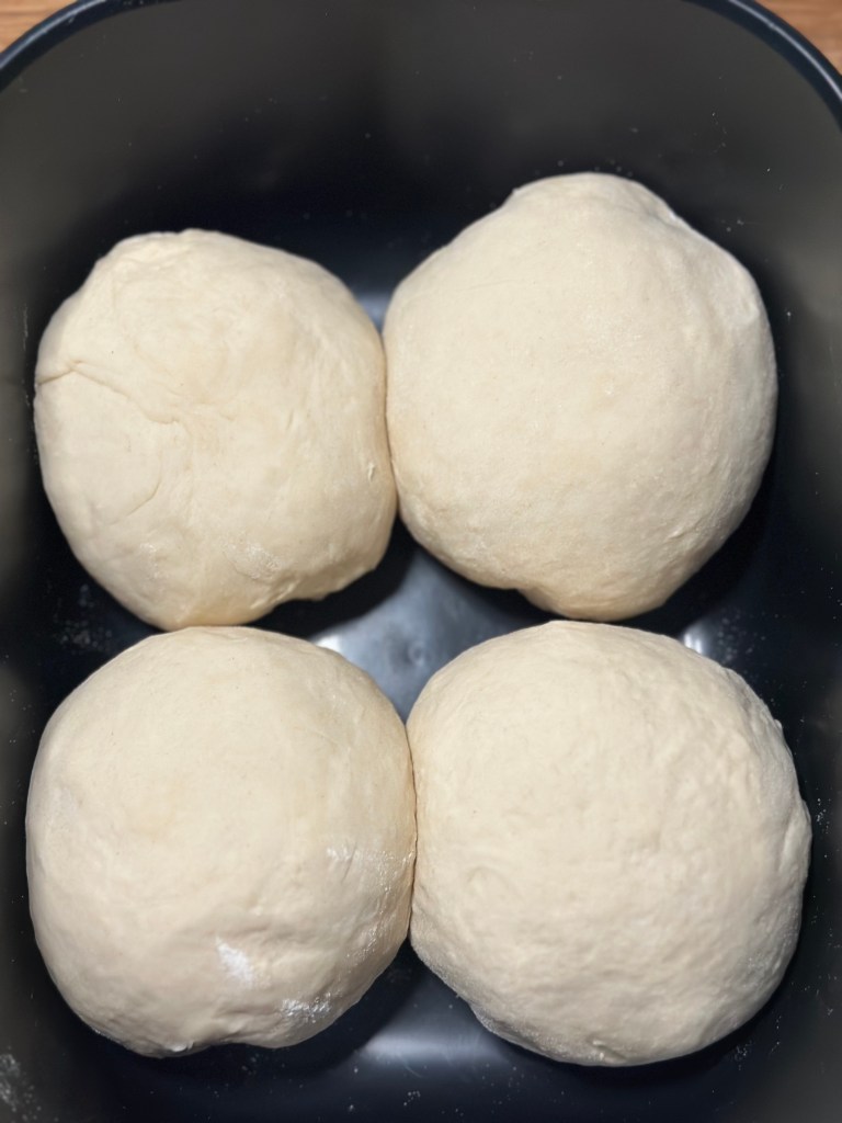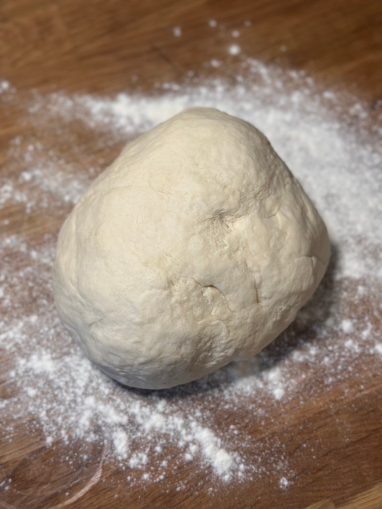Min søn Frederik har givet mig et pizzastål i fødselsdagsgave, og geg er så heldig, at min ovn kan gå op til 275 grader. Jeg kommer pizzaen ind i ca. 8 minutter ved den varme, eller til jeg kan se kanterne er gyldne og toppen bobler.