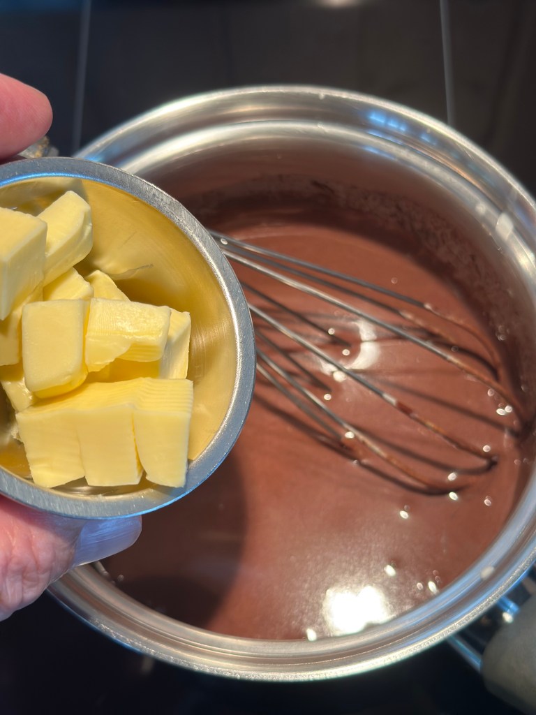 Pr. 100 mørk chokolade skal du bruge 10-15 gram smør. Ved hvid chokolade skal du bruge ca. halvdelen.