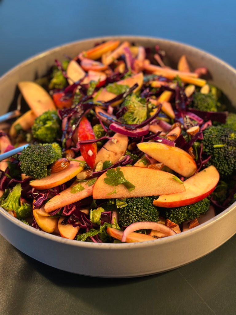 Dette er en virkelig lækker og sund salat – fyldt med alt det sundeste fra sæson. Salaten er yderst sund, plantebaseret og fiberrig — fuld af vitaminer, antioxidanter og gode fedtstoffer. Den er både antiinflammatorisk, kolesterolsænkende og styrkende for immunforsvaret.