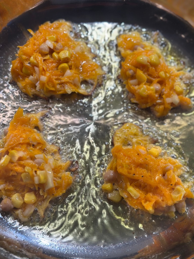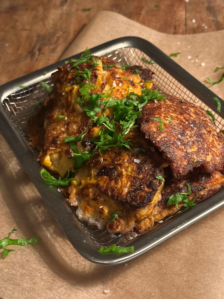 Jeg er i denne ret inspireret af Meyers køkken, som har skiftet kartoflerne ud med Hokkaido og tilført andre vegetariske elementer. Jeg har lavet min version, som passer perfekt til grillen, men kan også bruges til erstatning til kartoffel rösti med en lidt sundere version.