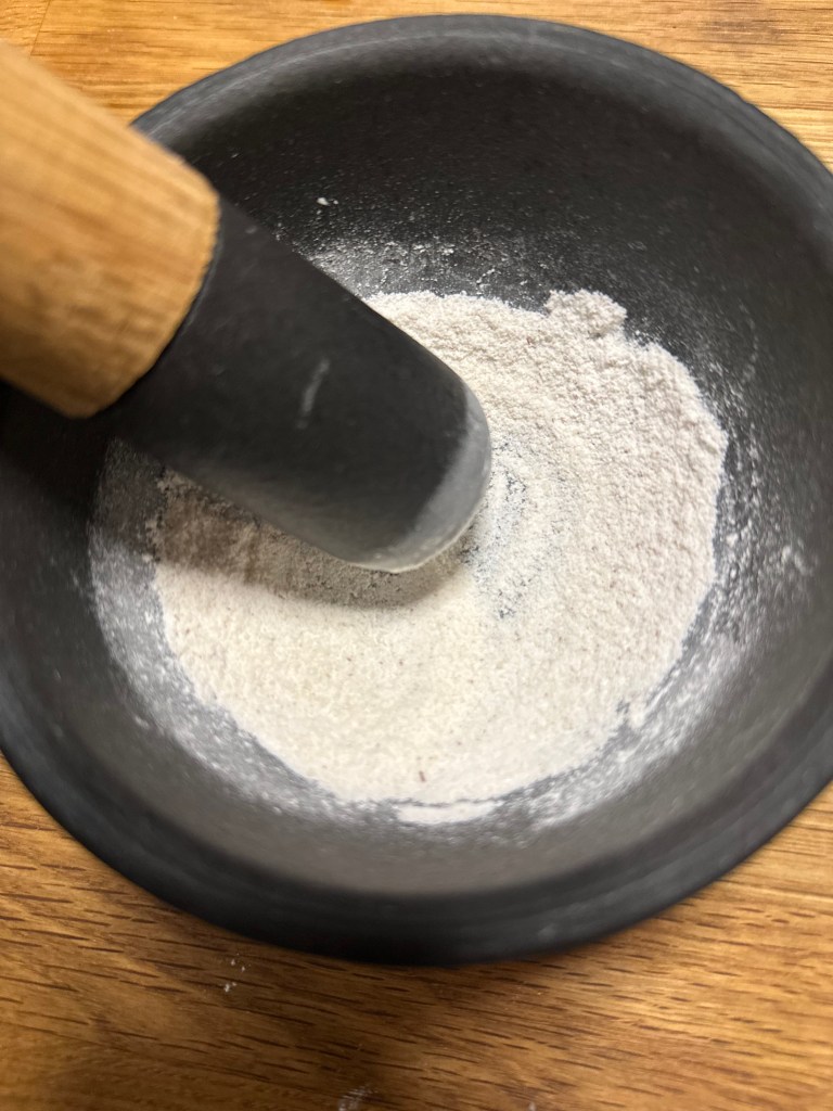 10 gram af sukkeret og safran kommer du i en morter og støder det hele godt. Herefter kommer safran sukkeret og de øvrige ingredienser i en røremaskine og lad den køre i 6-7 minutter.