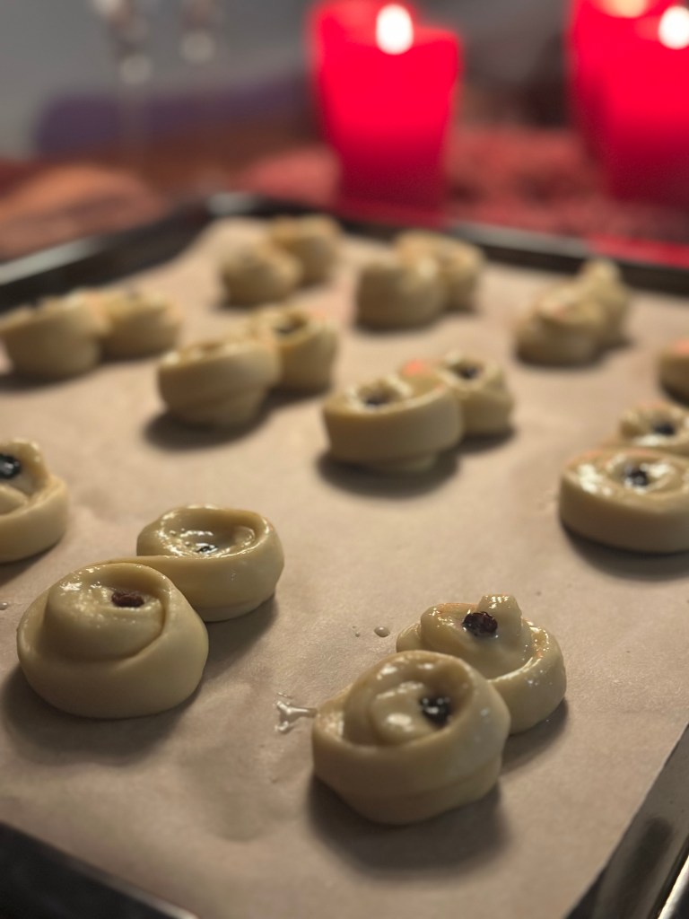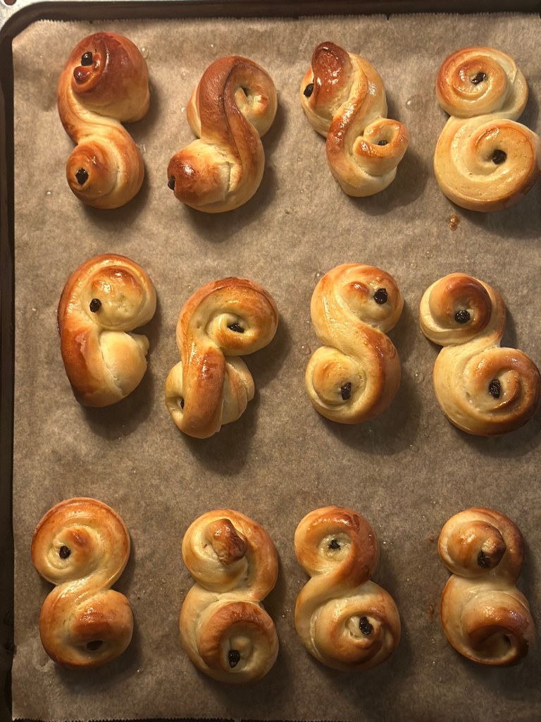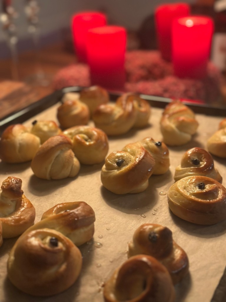 Lussekatter er safranbrød, der særligt hører til i Sverige på Luciadagen. De er formet som et “S” (eller andre traditionelle figurer) og pyntet med rosiner.