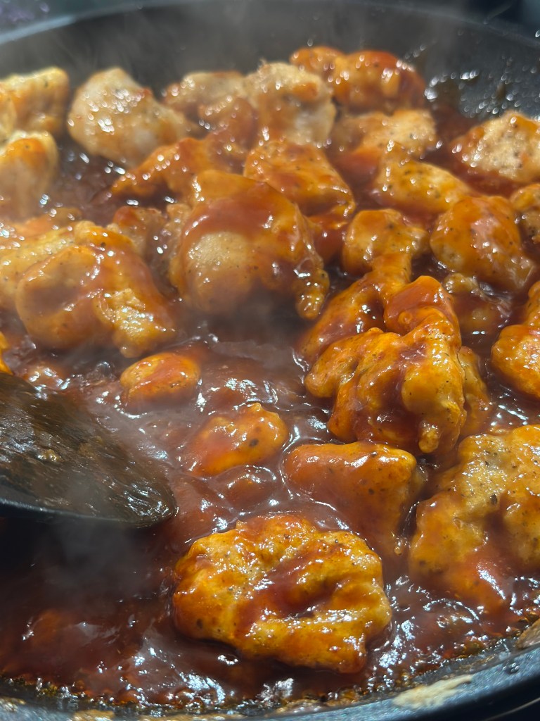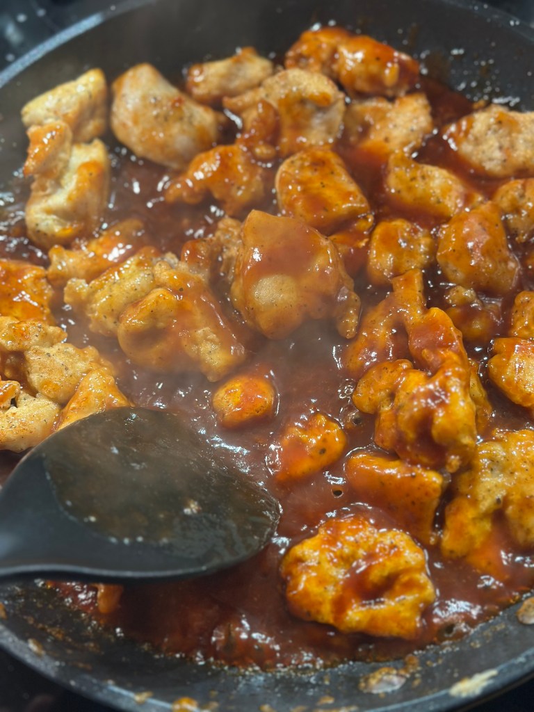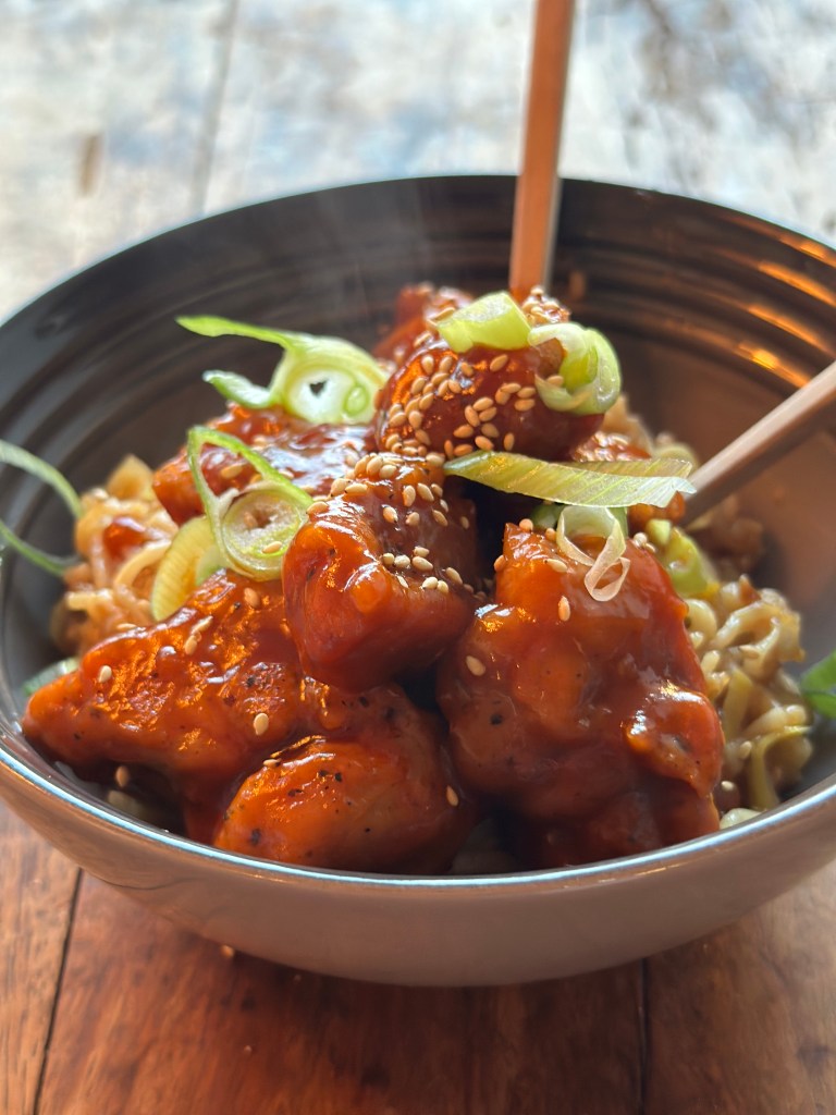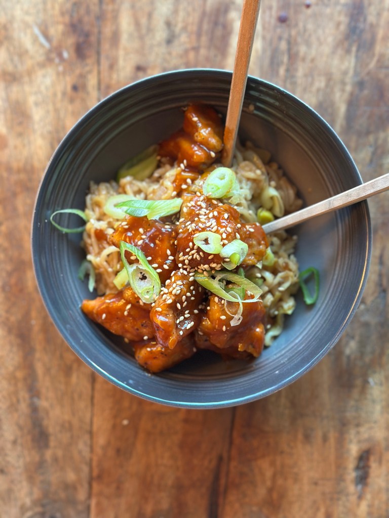 Orange Chicken, som vi kender den i dag, stammer ikke direkte fra klassisk kinesisk køkken, men fra kinesisk-amerikansk madkultur. Dette er min version, som er baseret på en tiktok video, som min søn har sendt til mig. Den kan serveret med ris eller med Chow Mein.