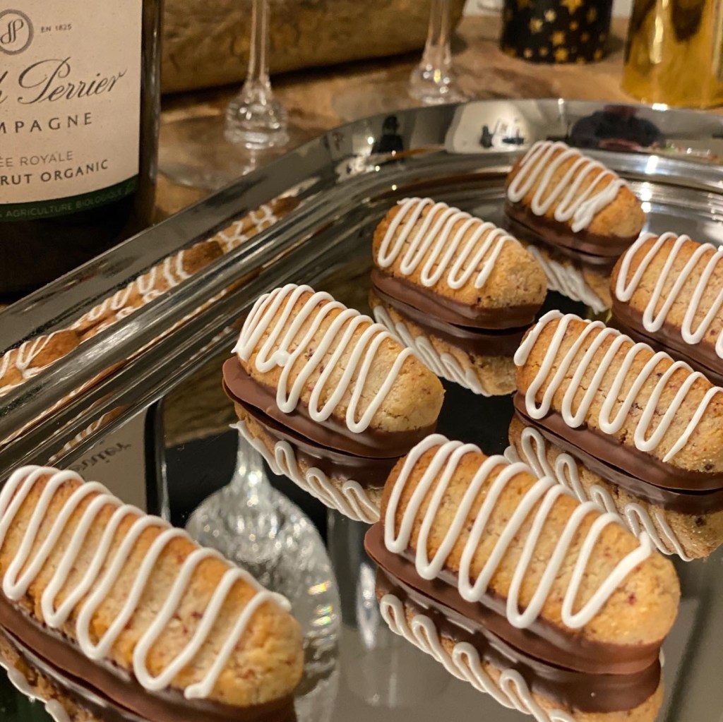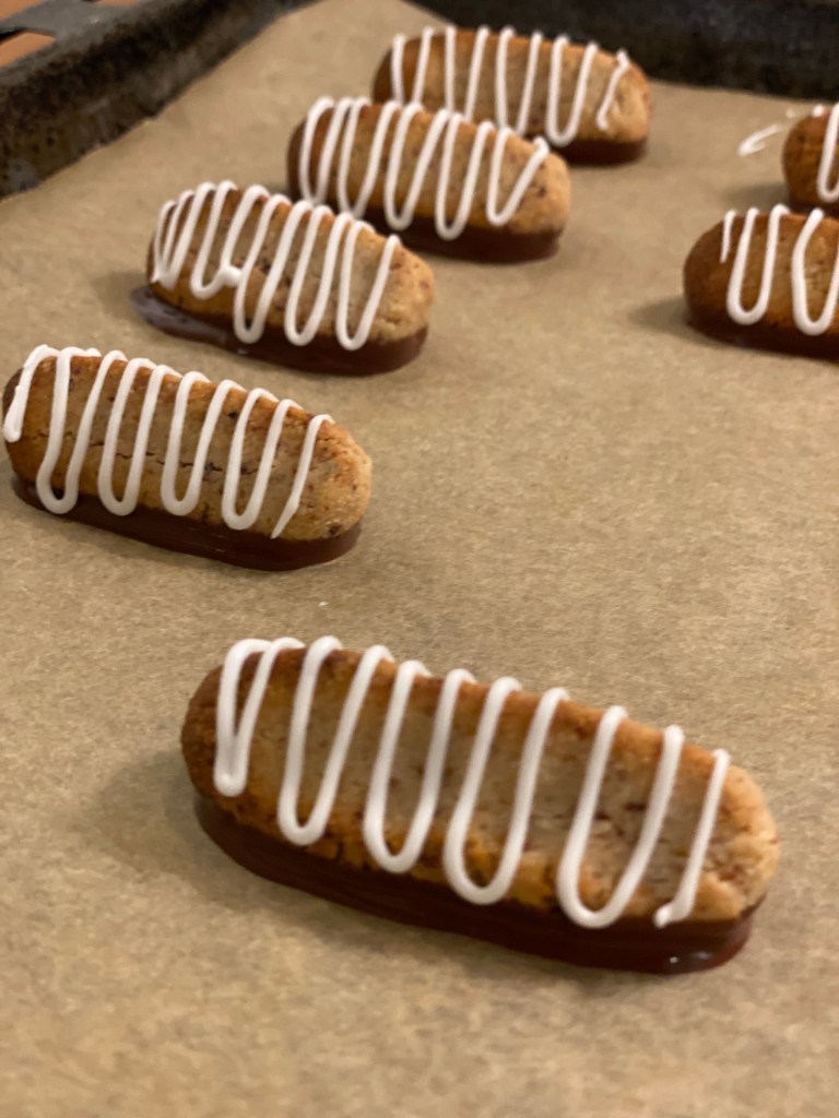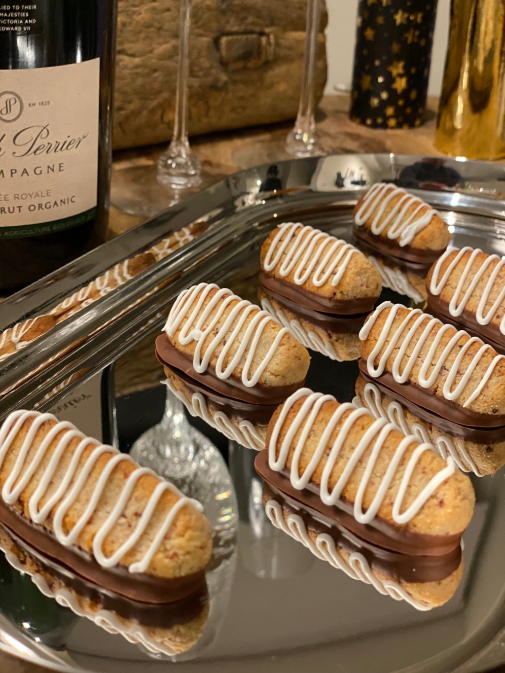 Glasur laves af æggehvide og flormelis. Monteres i en sprøjtepose med fint hul. Derefter kan du lave dit fine klassiske streger – øv dig fx. på et kosteskaft inden.