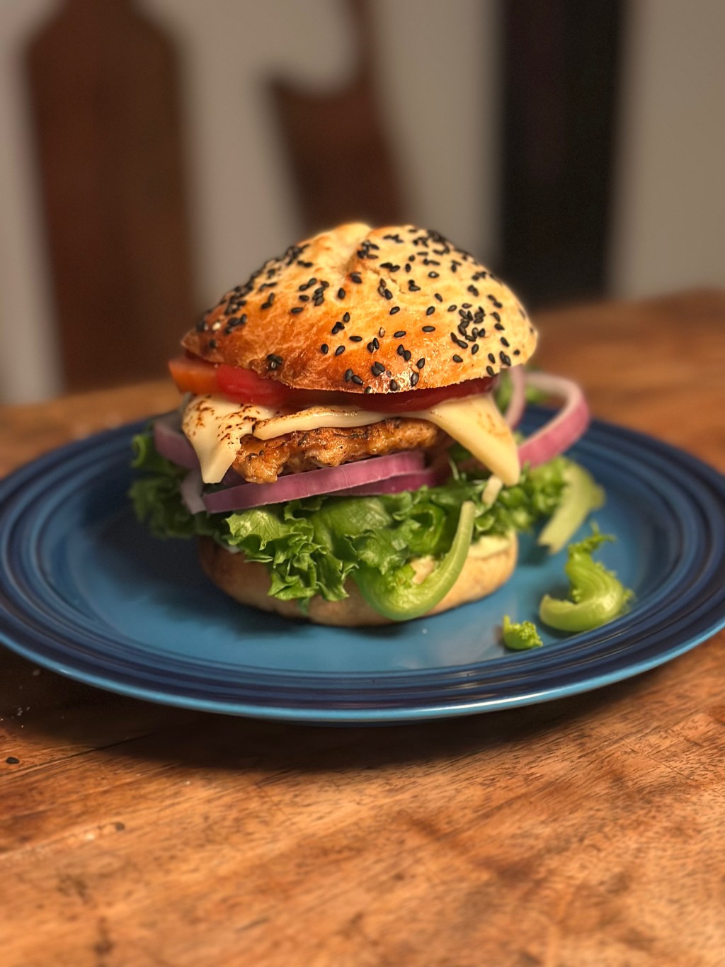 Her viser jeg en af de sunde alternativer til en lækker burger. Jeg bruger kylling som protein elementer, og krydrer den så lækkert, at den virkelig smager af noget – hvilket generelt er svært ved hakket kyllingkød.