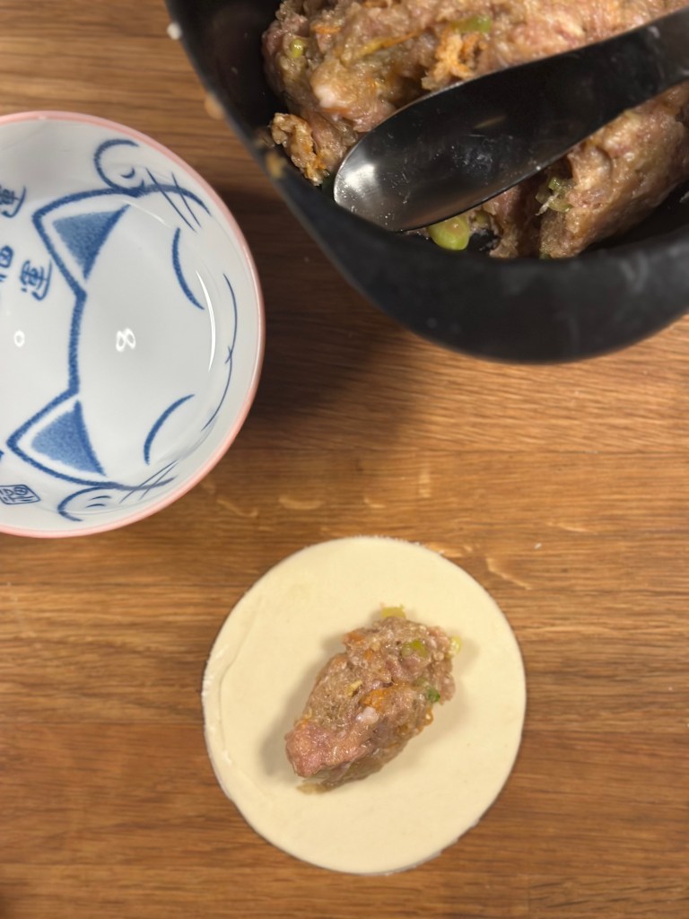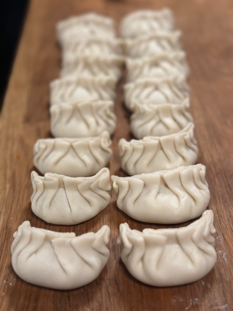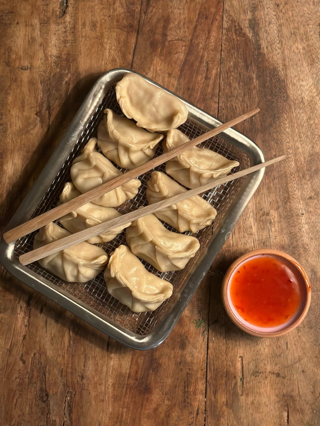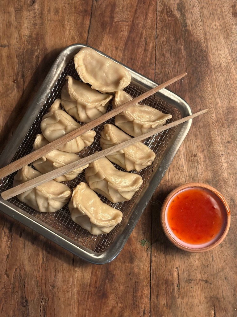 Der kan være 5-6 dumpling per “batch”. De skal have 10 minutter, hvorefter de skal tørre på en rist – ikke papir, for så får du aldrig papiret af igen.