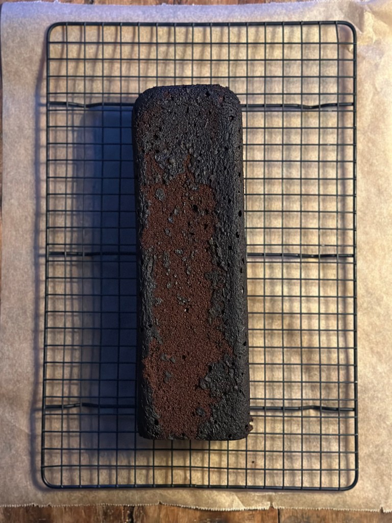 Tager kagen ud af ovnen. Vent 2-3 minutter og vend kagen til afkøling ud på en bagerist! husk og vend den på den rigtige side. Afkøl den et køligt sted i ca. 30 min.