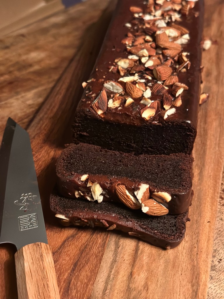 Pynt gerne med pistacienødder, hakkede ristede mandler eller hakkede hasselnødder fra Piemonte. På denne kage har jeg blot brugt ristede hakkede mandler.