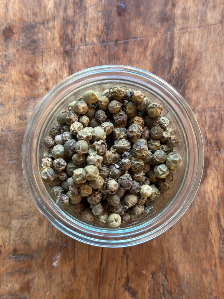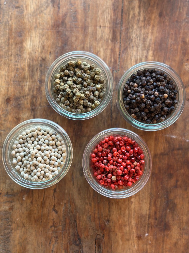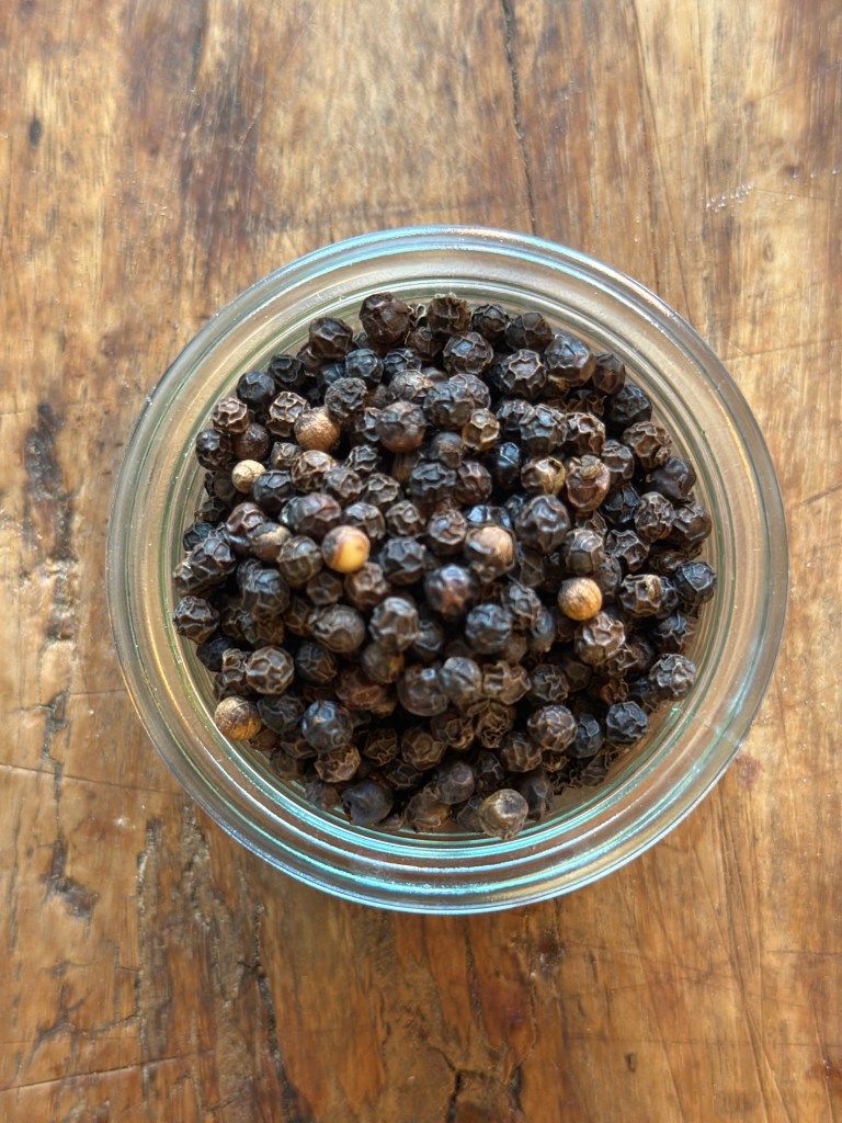 - Sort peber – Umodne bær, der tørres. Kraftig og aromatisk.