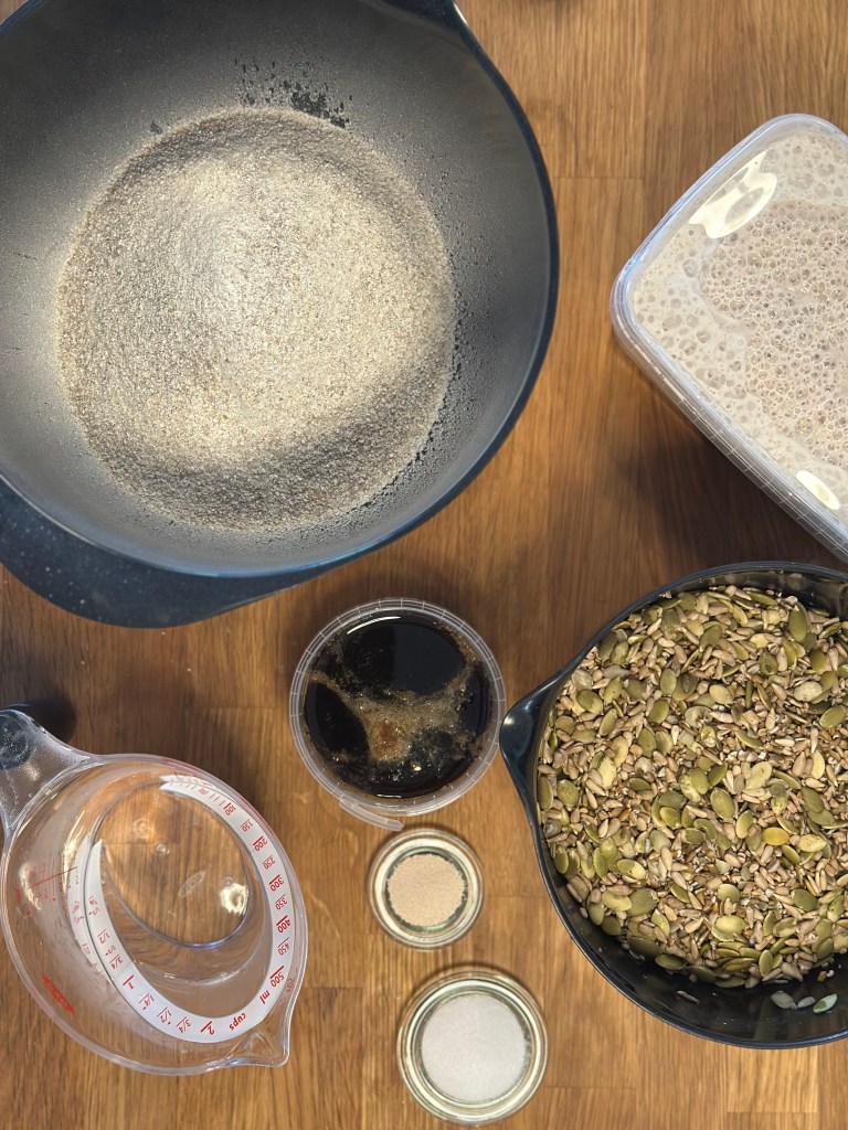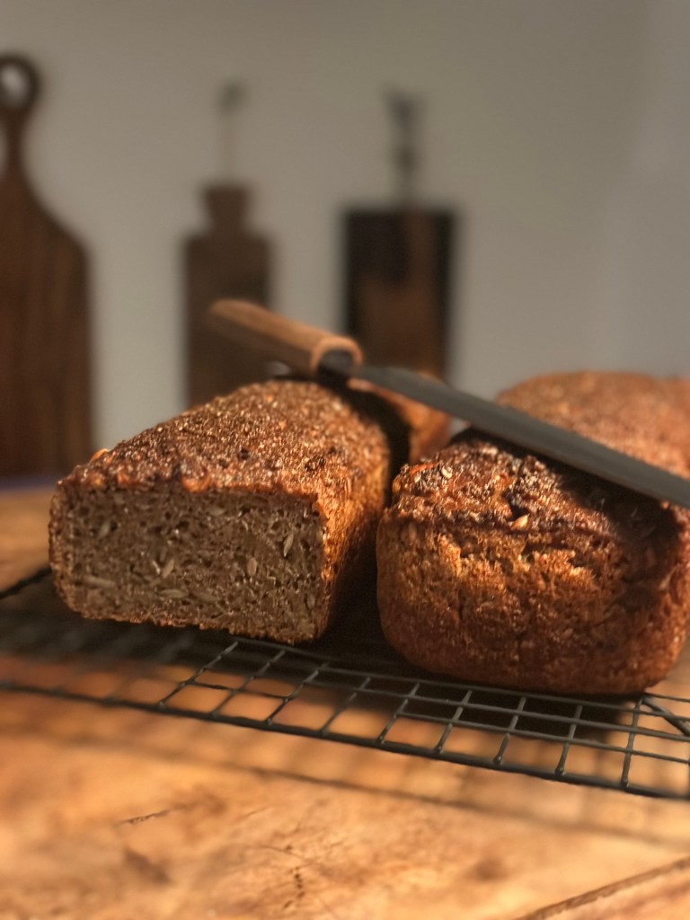 Jeg elsker hjemmebagt rugbrød, og denne opskrift er supernem. Brødet kan holde sig fint et par uger på køl, og når det har sidste udløb, kan du bruge det til den lækreste øllebrød. Husk at se nederst i opslaget mine videos af det praktiske.