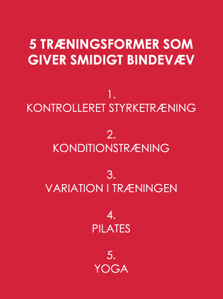 Bindevæv reagerer på mekanisk belastning. De langsomme og kontrollerede bevægelser i Pilates giver gentagen, moderat belastning, som kan stimulere vævets kollagenomsætning – dog typisk mindre end tung styrketræning.