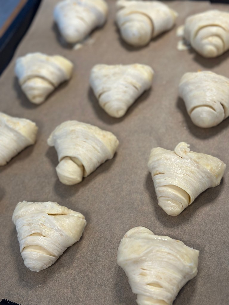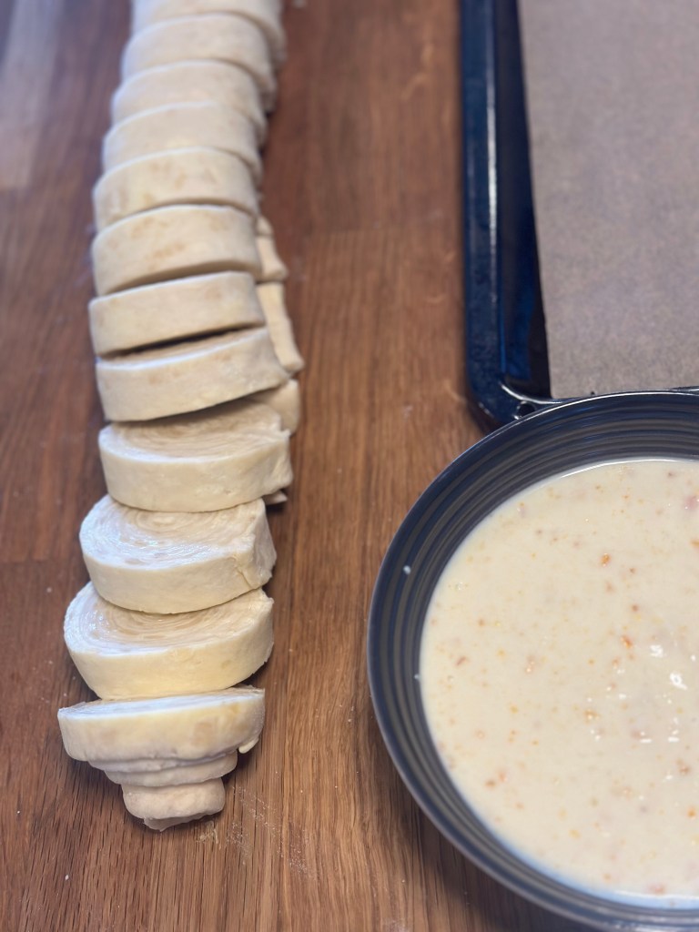 - Rul herefter dejen tæt, og skær i 3 cm tykke stykker.