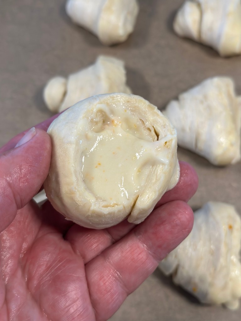 - Kom er klat creme ned i, og luk til. Hvis du tænker den er lidt tynd, så retter det sig når de bliver bagt.