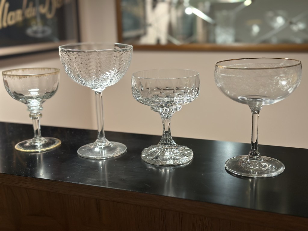 Coupe glasset er det ældste champagne glas. Man siger den er en kopi af Marie Antoinettes venstre bryst, men når man efterprøver tidsregningen, passer det ikke helt. Glasset er fra 1663 og Marie blev født i 1755. Der er dog kilder som siger det først blev opfundet 100 år senere, og så kunne det sagtens være Marie. Glasset er spist i bunden, da det er derfra boblerne stiger til vejrs – den brede overflade får boblerne til at se flotte ud, men også at “boble af” hurtigere.