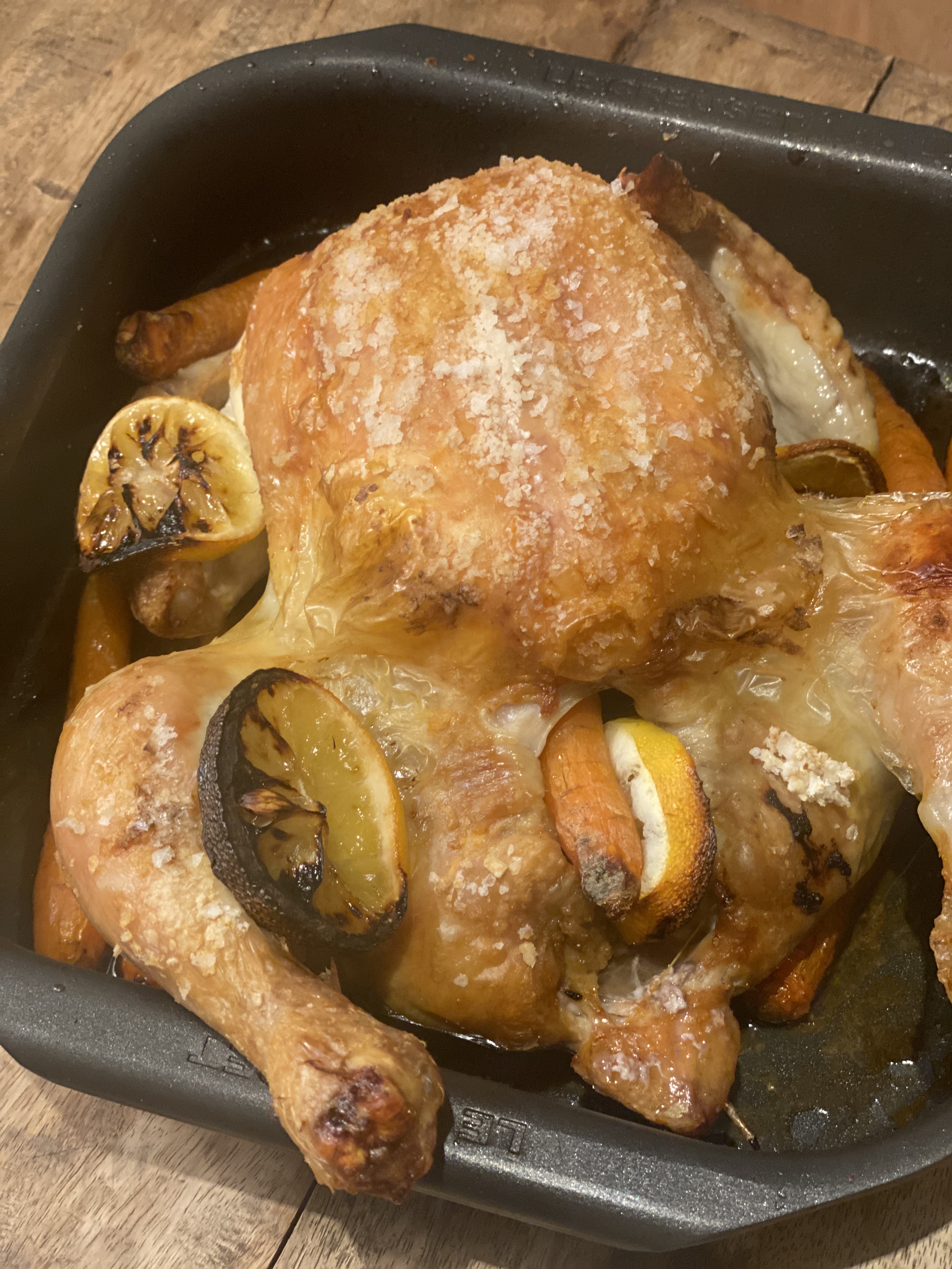 Hvis man blot er sig selv, eller to personer, kan en hel kylling godt blive for meget. Skal du lave en caesar salad, så kan to stykker kyllingbryst være perfekt. OG køb gerne med skin. Dette en en fransk kylling fra Løgismose. Kyllingen skal blot krydres med salt, og lægges i airfryeren i 18-20…