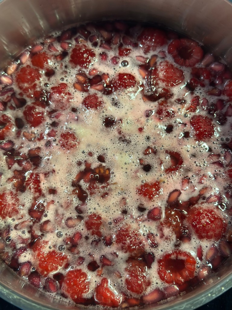 Sæt det hele i kog til du får en opløst masse – herunder sukkeret. På det igennem en si og hæld på flaske. Kan holde sig i lang tid på køl.