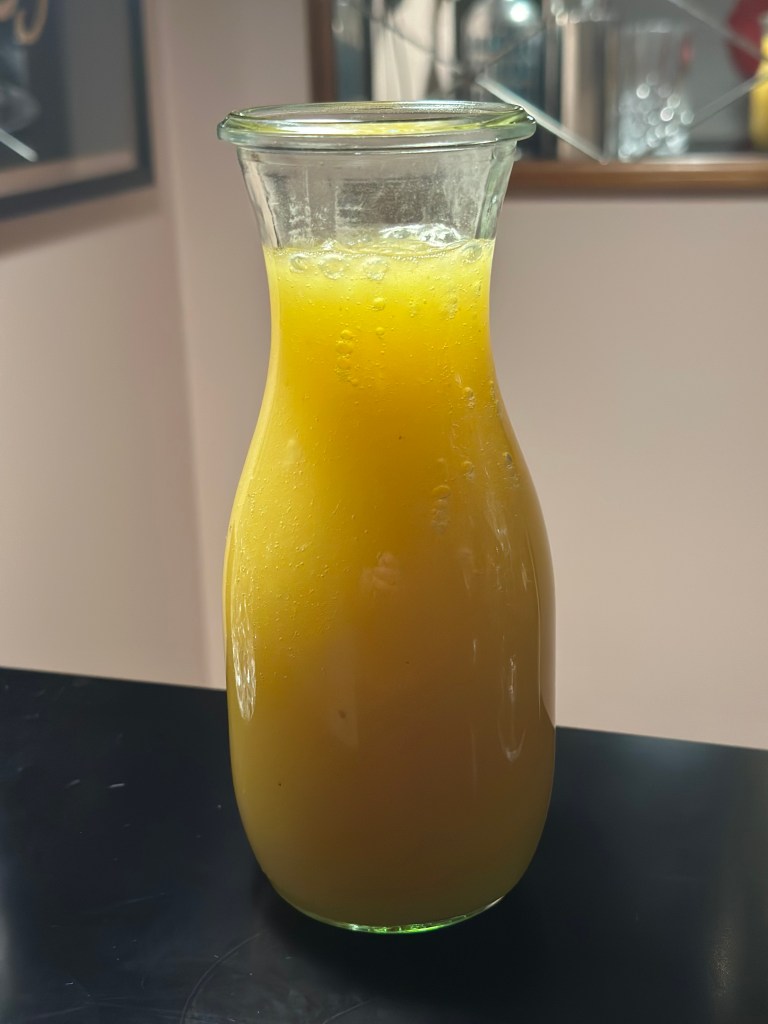 Kim Hass laver også sin mango syrup selv, og da han præmært sælger den i Jylland, og det er sundest at bruge rene ingredienser, så bliver det hjemmelavet – og sundere. Mango er nemlig fyldt med A og C vitaminer, som styrker immunforsvaret. Folat som er godt for blodomløbet. Og fordi jeg blendede mangoen, er de fantastiske kostfibre også med. Kalium til blodomløbet.