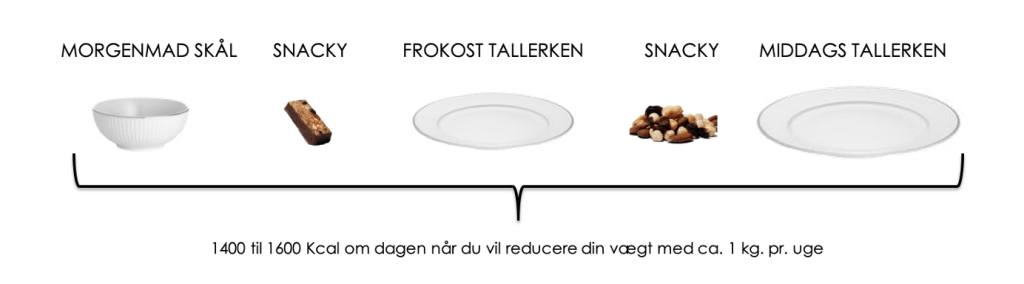 Hvis du dagen igennem, nøjes med at spise til måltiderne, og du samtidig spiser det som svarer til måltidets “tallerken” – eller skål, så vil du få de mængder som er passende.